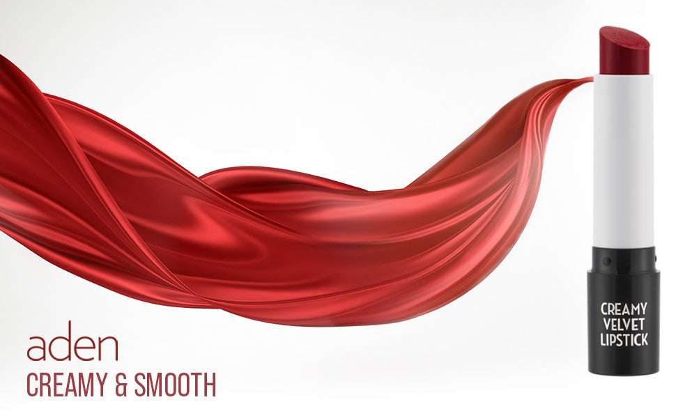 Aden Cosmetics new Creamy Velvet lipsticks are all extremely creamy, smooth, and hydrating on the lips. Creamy Velvet dresses the lips in eight bold colours with a velvet finish. The eight new shades are composed of four super versatile nude shades, two light pinkish shades and finally, two extra captivating red shades